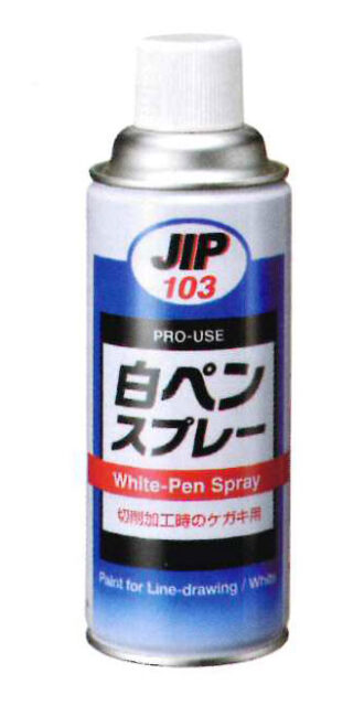 白色塗料のケガキスプレーです。密着性が優れており、あらゆる金属・鋳物表面に使用できます。